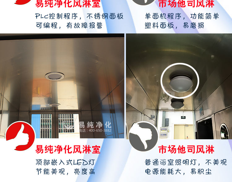 3、采用風機高低檔轉速要求對內部空氣進行自動循環自凈。當有人員進入風淋內部時,風淋風機啟動,風速一般達到25-28米/秒左右,當人員出風淋后,風淋風機低速運轉,在設定時間到達后即停止。這樣的反復自凈,將內部空氣不斷循環更新,以保證室內空氣的新鮮及潔凈度。